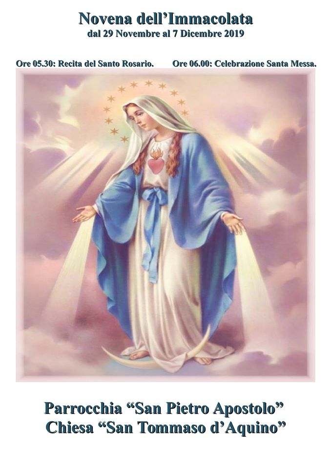 Novena dell'Immacolata dal 29 Novembre al 7 Dicembre nella Parrocchia "S. Pietro Apostolo" e nella Chiesa "S. Tommaso d' Aquino".